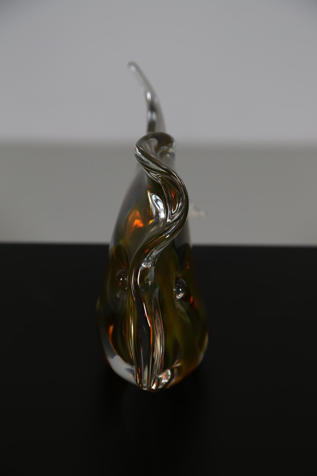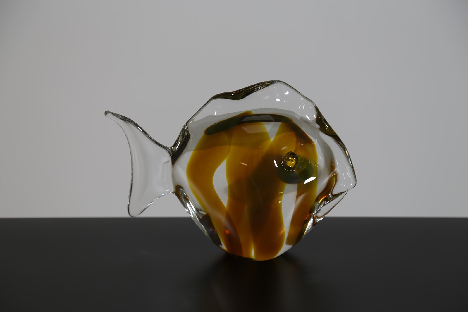 MANIFATTURA MURANESE DEL XX SECOLO Pesce in vetro sommerso color ambra, anni...
