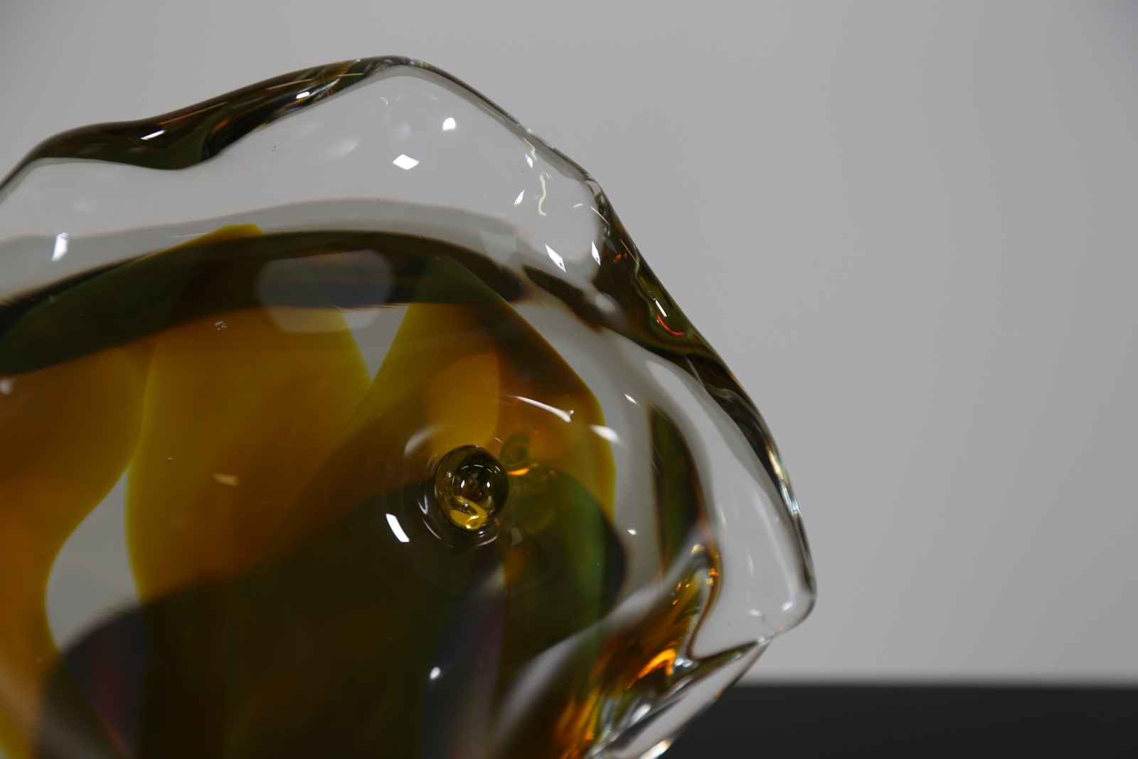 MANIFATTURA MURANESE DEL XX SECOLO Pesce in vetro sommerso color ambra, anni 70. -. Cm 27,00 x 20,00 x 8,00.