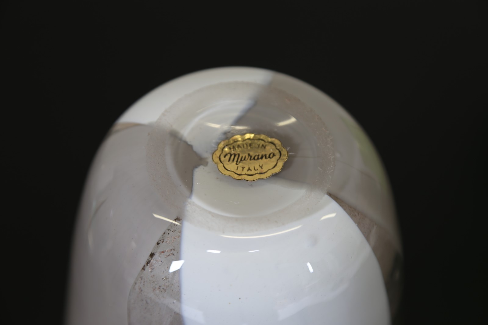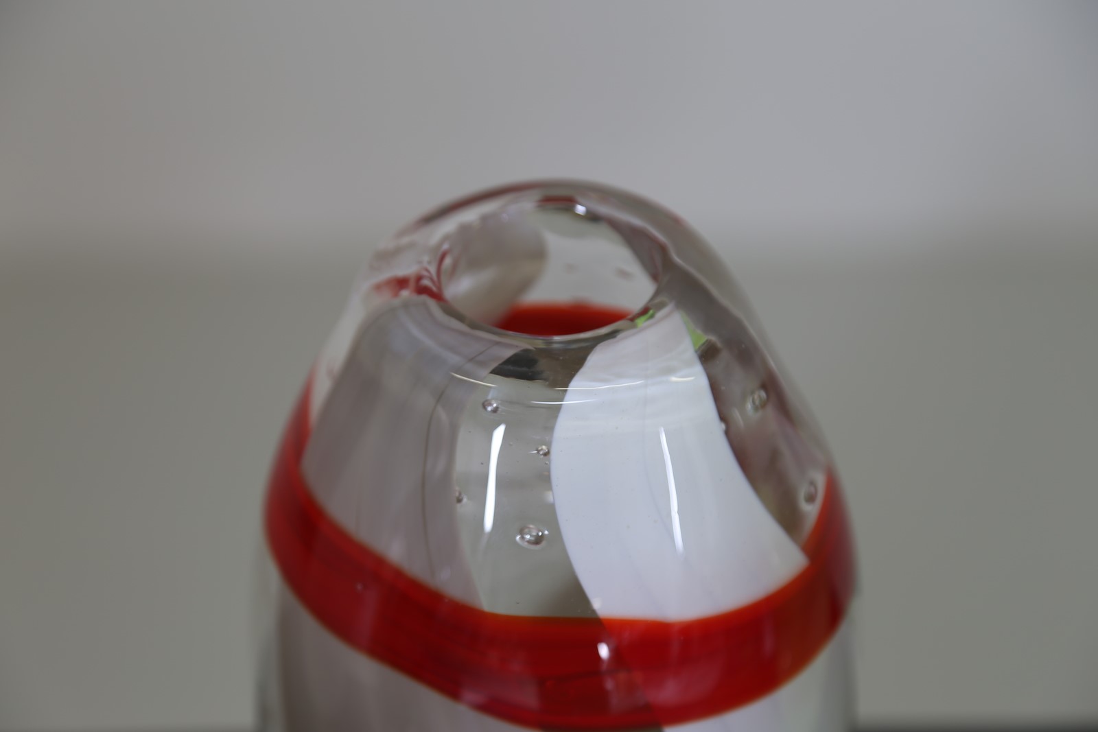 A.V.E.M Vaso a mezza filigrana con inclusioni a fascie verticali, orizzontali e bollicine, per AVEM anni 60. -. Cm 13,00 x 26,00 x 13,00.