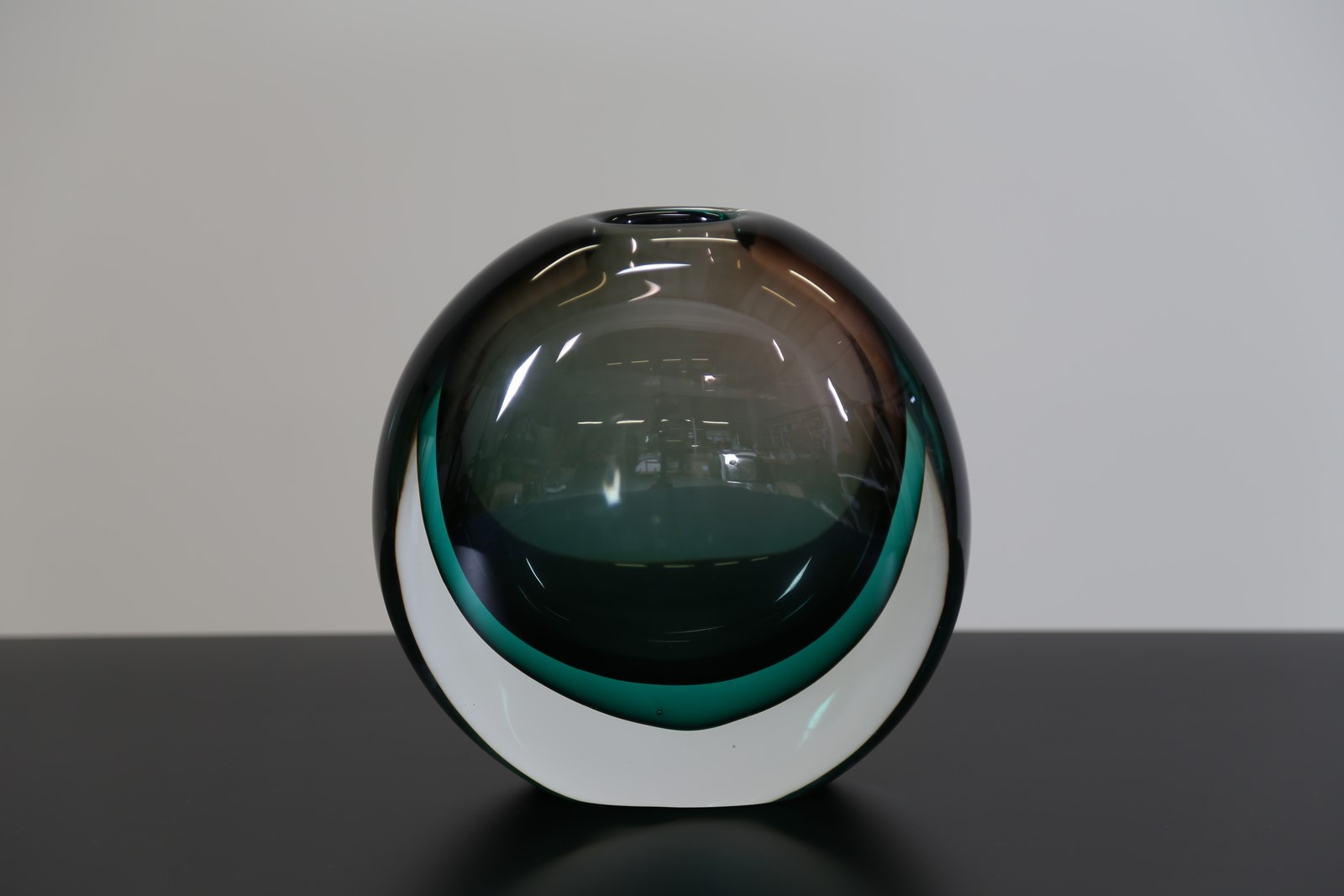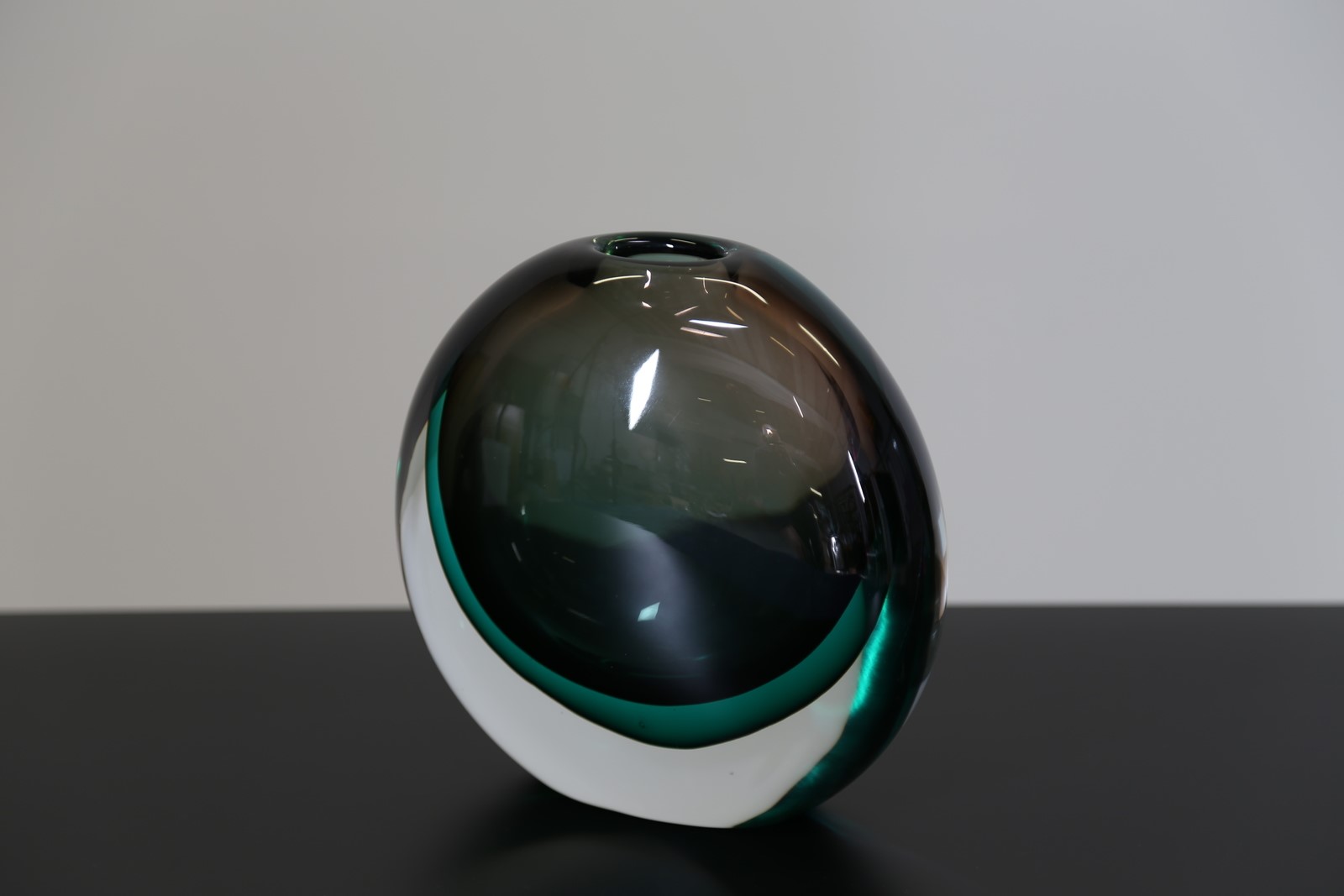 GASPARI LUCIANO Vaso in vetro massello sommerso, per Salviati anni 60 . -. Cm 20,00 x 20,00 x 10,00. Firma alla base