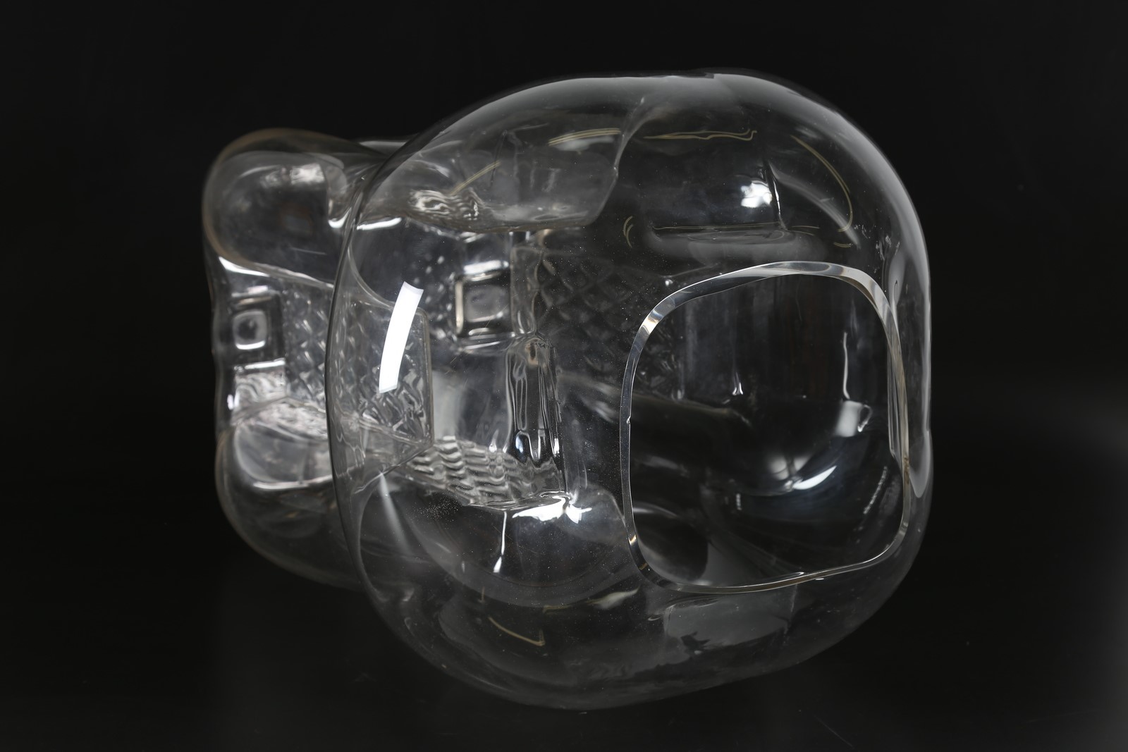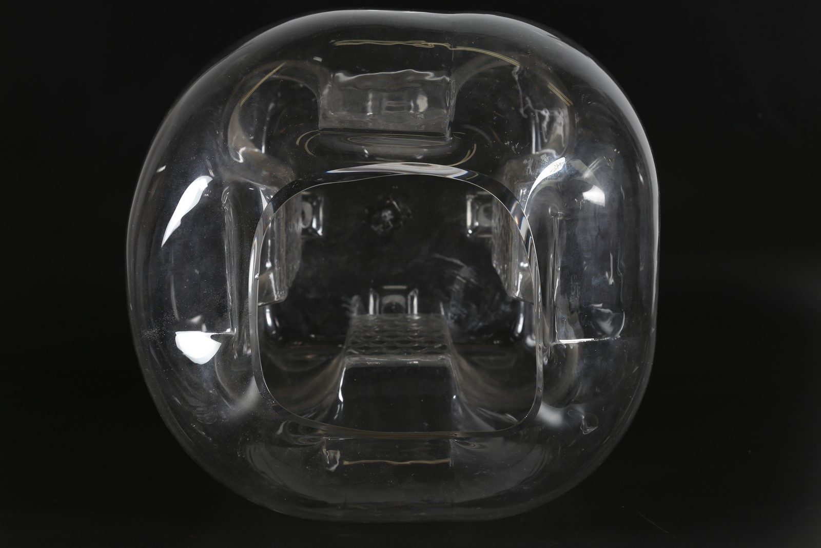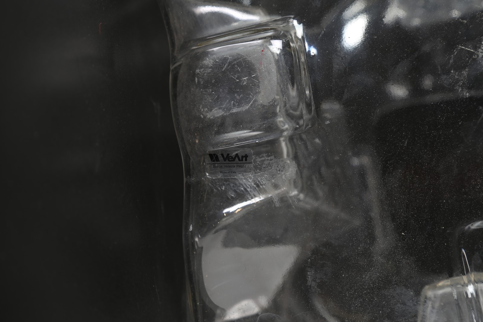 ZUCCHERI TONI (1937 - 2008) Grande vaso in cristallo a quattro facce increspate per Veart anni 70°. -. Cm 43,00 x 56,00 x 41,00. Etichetta presente. Impercettibile scheggiatura sul bordo.