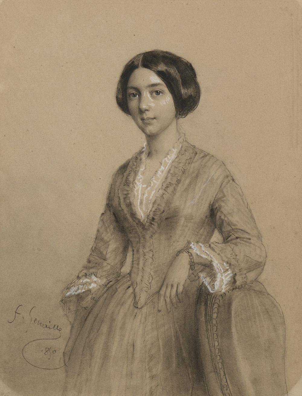 "Portrait of a Lady" pencil and white lead on paper applied to cardboard (cm 26,5x20) Signed and dated 1850 at bottom left. Label to reverse. Framed (defects)