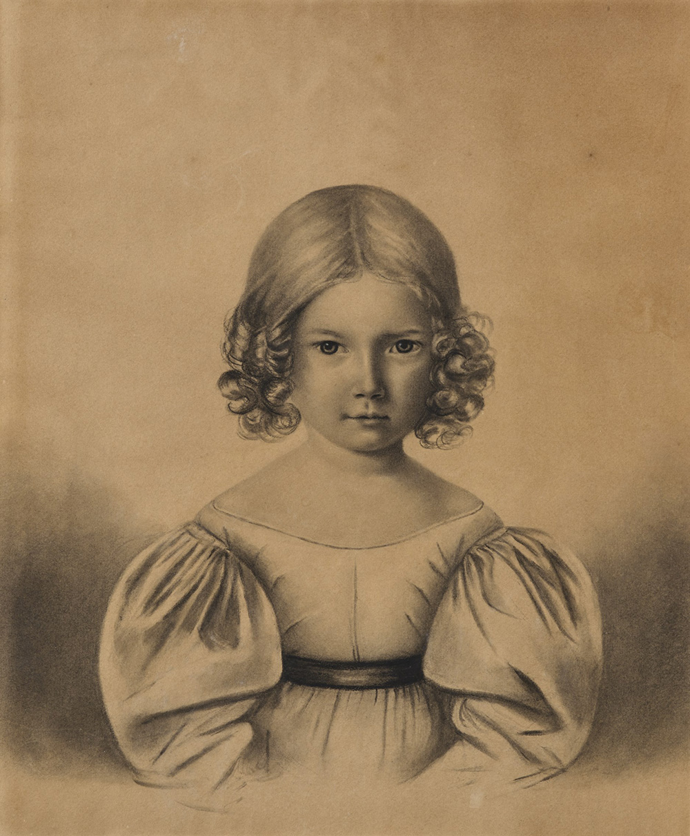 Maestro del sec. XIX "Ritratto di fanciulla con boccoli" matita su...