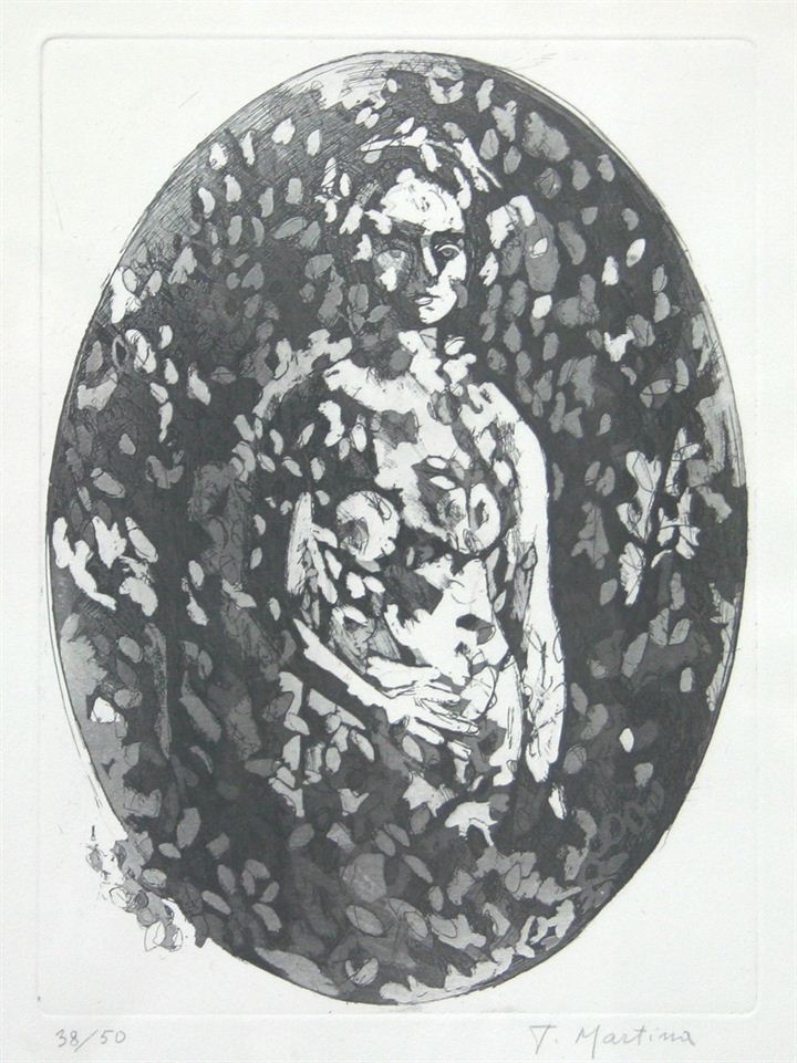 MARTINA T "Nudo femminile tra le foglie" 49x34 foglio, 33x24 acquaforte es....