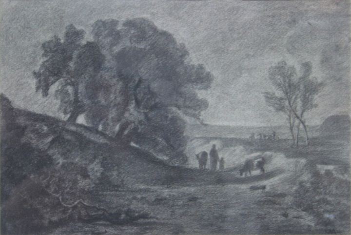 MERLO CAMILLO Torino 1856 - 1931 "Pascolo" 20x29 carboncino su carta Opera...