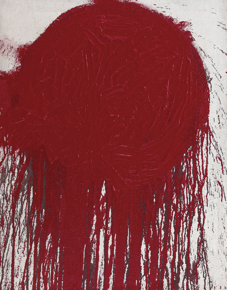 HERMANN NITSCH Vienna 1938 - K-Sabine, 2008, olio su tela di juta cm. 100x80, firma, titolo e anno al retro, opera registrata presso la Fondazione Nitsch come da expertise allegato.