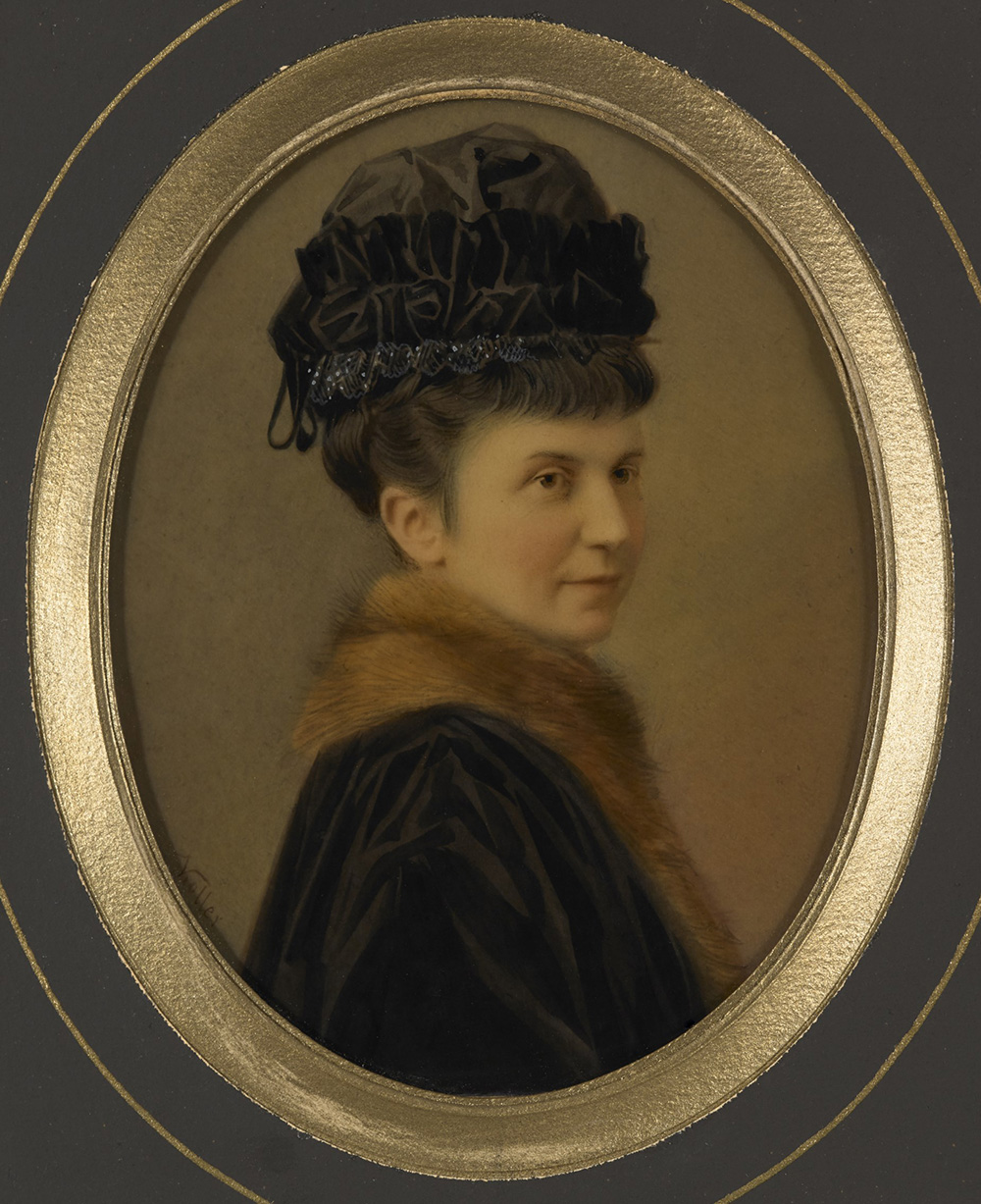 Karol Koller (Hermannstadt 1838 - Budapest 1889) "Oval portrait of a lady wearing a fur collar" Photographic plate (cm 11x8.5) Signed at bottom left. Framed. To reverse traces of paper label (defects)