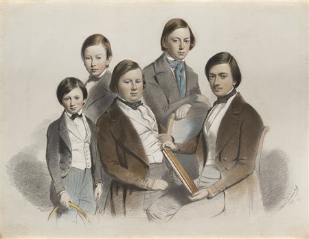 Scuola del sec. XIX "Ritratto di famiglia" matita e pastelli...