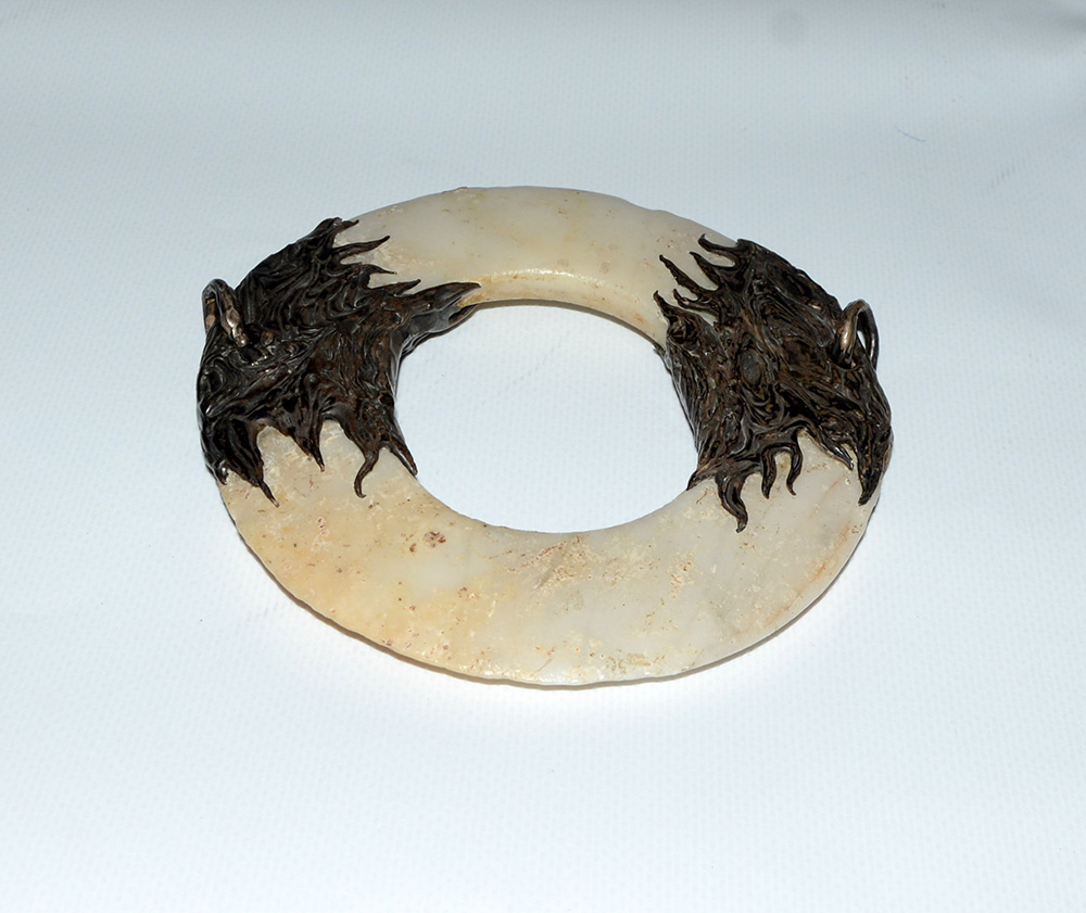 Disco bi in giada con montatura in metallo (difetti) Cina, sec. XX (h. 15 cm.)