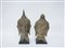 Lotto di due teste di Buddha in bronzo, su basi in legno (difetti) (h. max 45...