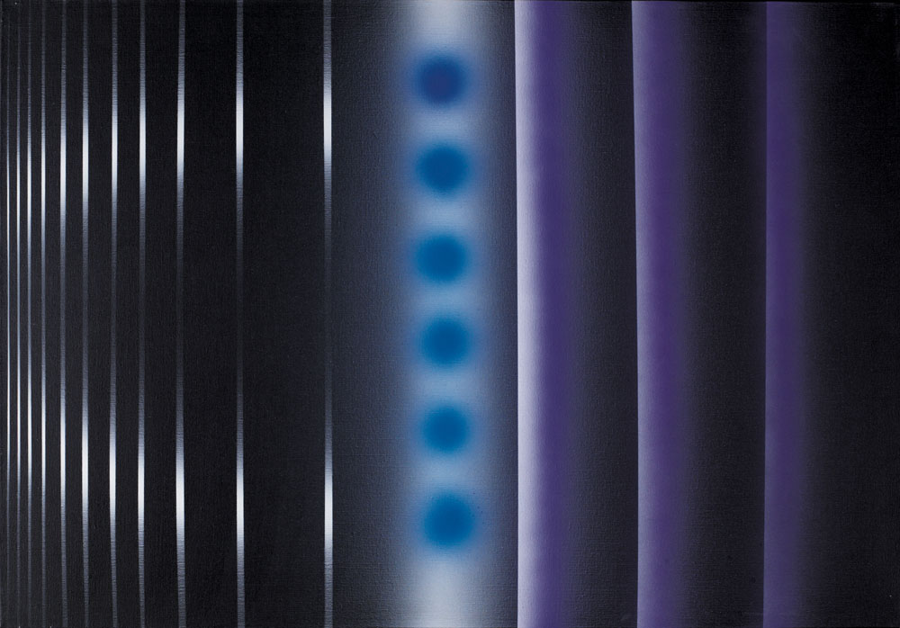 ENNIO FINZI Venezia 1931 - Lucimetria in bianco-nero, 2006, olio su tela cm. 70x100, firma, titolo e anno al retro, dichiarazione d'autenticità dell'artista su foto.