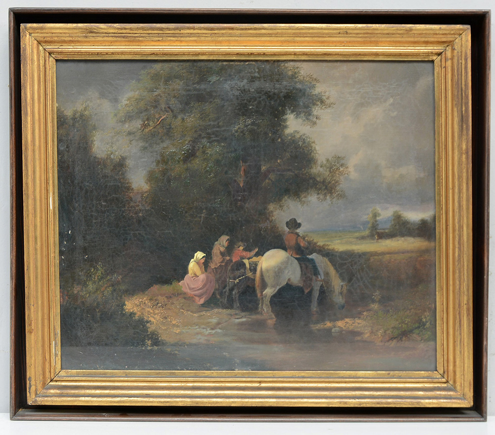 Lotto 39 | Scuola del sec. XIX. "La sosta" olio su tela (cm 50x60) in cornice
