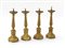 Gruppo di quattro candelieri ad una fiamma in ottone con base tornita. Fine sec. XIX (difetti)