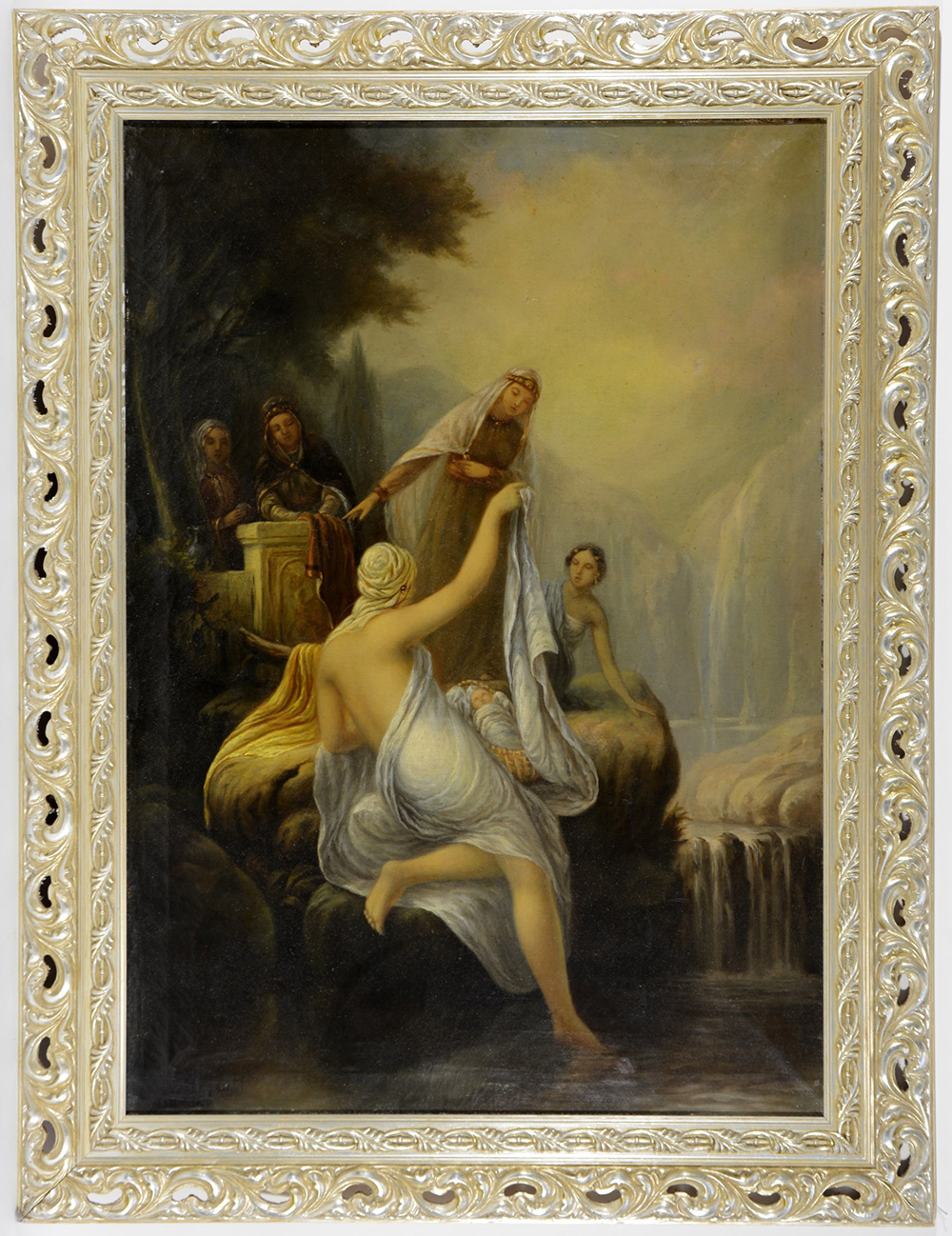 Bergeni "Odalische al bagno" 1936 olio su tela (cm 86x61) firmato e datato in basso a sinistra. In cornice (difetti e restauri) -EN "Odalische al bagno" 1936 olio su tela (cm 86x61) firmato e datato in basso a sinistra. In cornice (difetti e restauri)