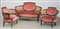 Fornitura da salotto composta da un divano e due poltrone in legno intarsiato...