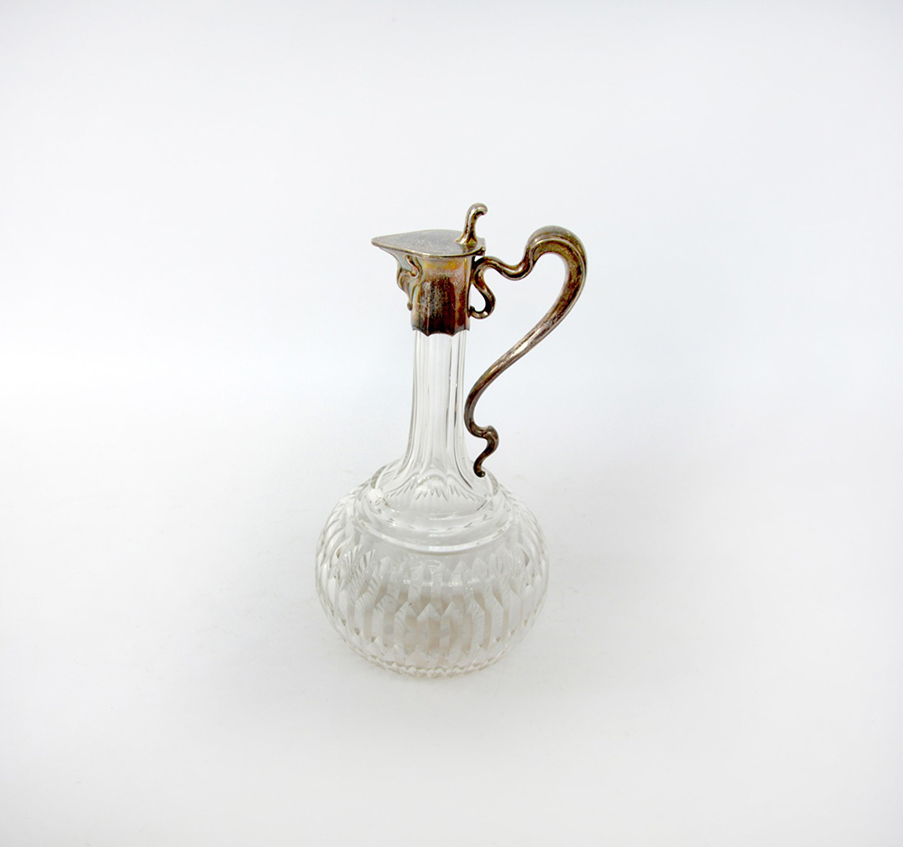 Versatoio liberty in cristallo molato con presa e bocca in argento (h cm 30) (difetti)