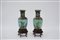 Coppia di vasi in metallo cloisonné decorati a fiori volute ed uccelli, con...