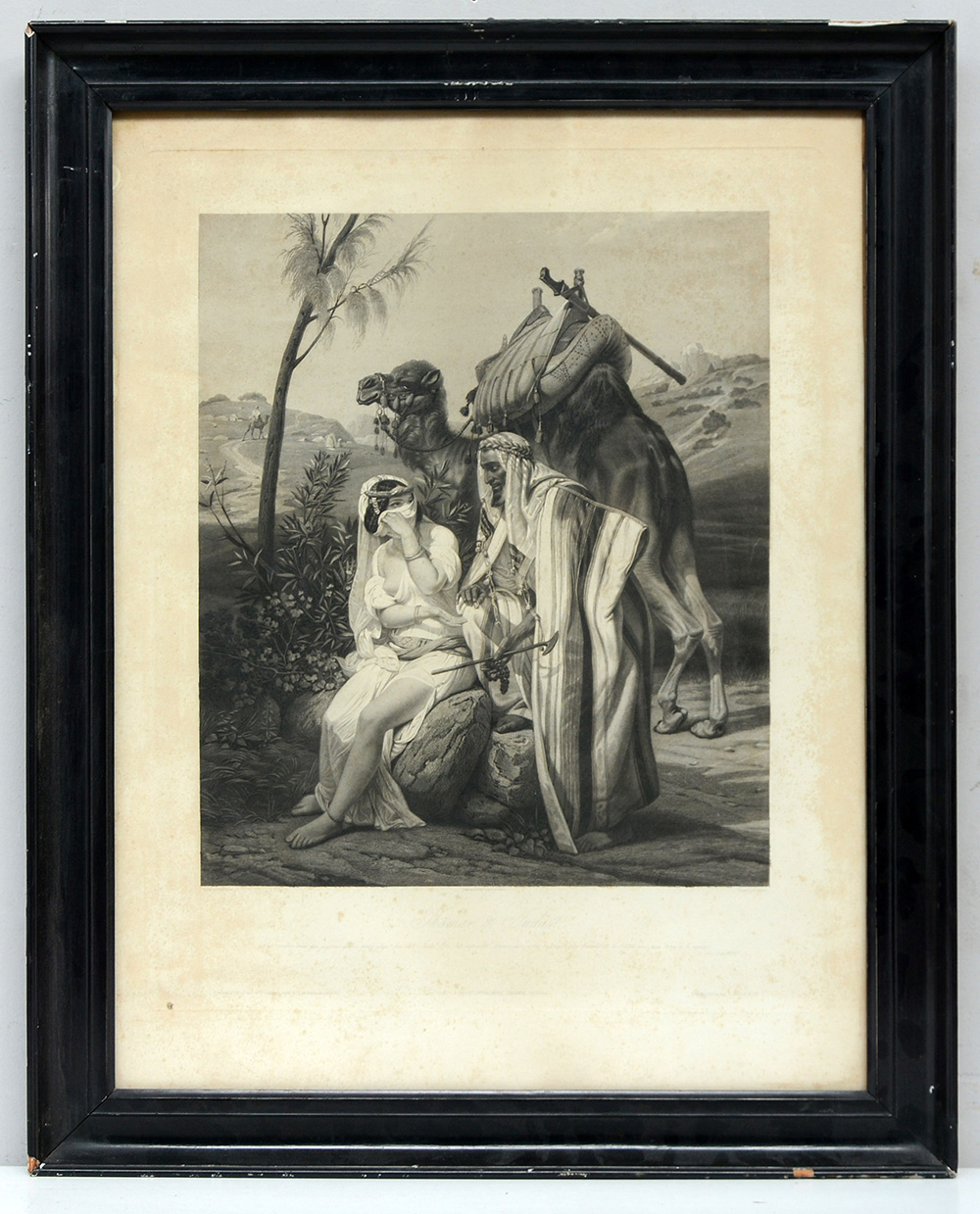 Litografia del sec. XIX raffigurante figure arabe (cm 61x46) in cornice...