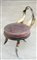 Sgabellino di forma tonda in legno ebanizzato con schienale e gambe composte...