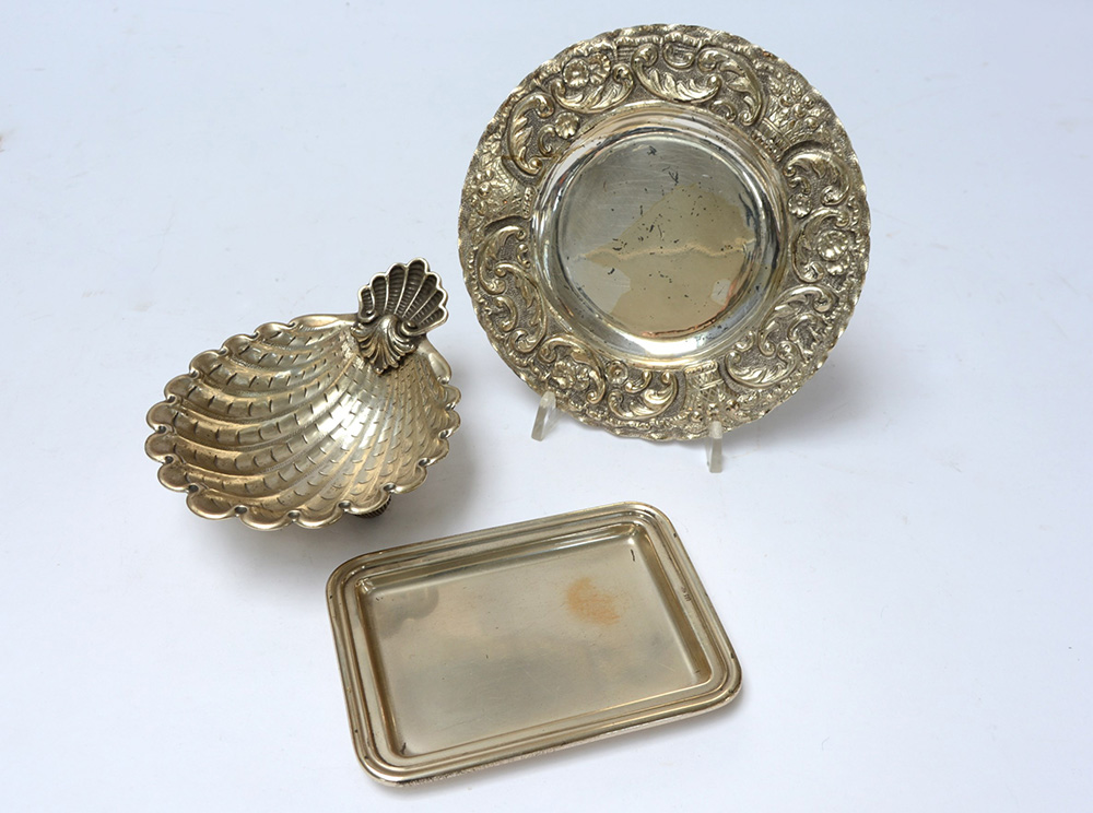 Lotto composto da un posacenere e un vassoietto in argento e un vassoietto in...