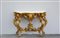 Consolle di forma sagomata in legno dorato. Riccamente intagliata e traforata...