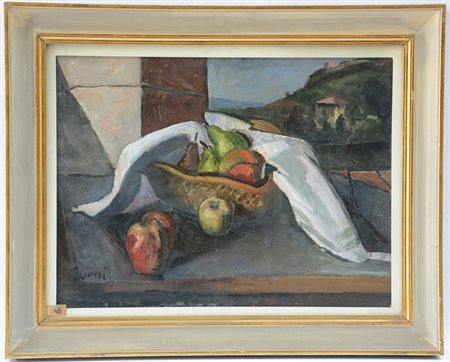 Lotto 220 | Gajoni Adriano (Milano 1913 - 1965) "Canestra di frutta sul davanzale" olio...