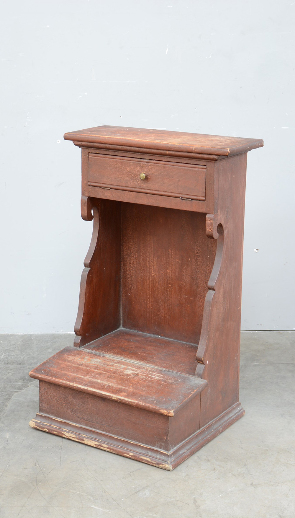 Inginocchiatoio in legno dolce ad uno sportello sotto piano e montanti sagomati (cm 50x86x45)