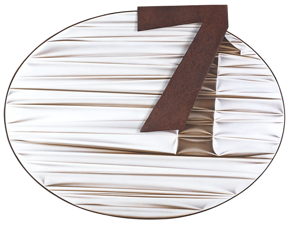 UMBERTO MARIANI Milano 16/11/1936 - Senza titolo 7et, 1989, acrilico su tela e lastra in ferro cm. 90x120, firma, titolo, anno e timbro della Galleria Bonaparte (MI) al retro, dichiarazione d'autenticità dell'artista su foto.
