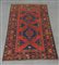 [Tappeti] Tappeto Karabagh, Caucaso, sec. XX. Disegno a due medaglioni nei toni del rosso, verde, azzurro e bianco su fondo rosso (cm 237x136) (difetti e restuari)