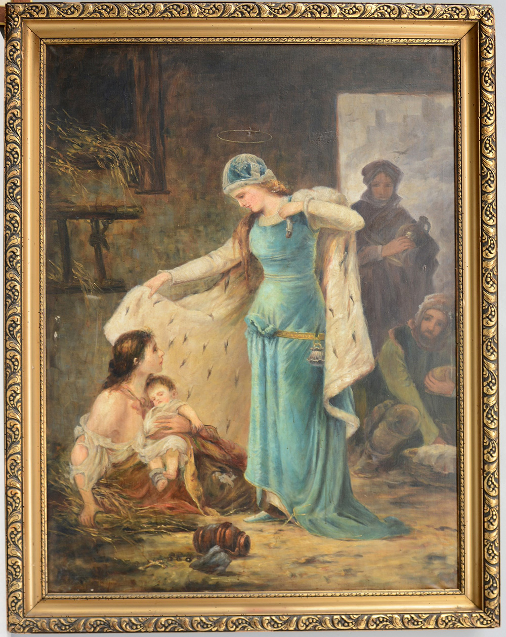 Ignoto "Santa con ermellino" olio su tela (cm 120x90) in cornice (difetti)