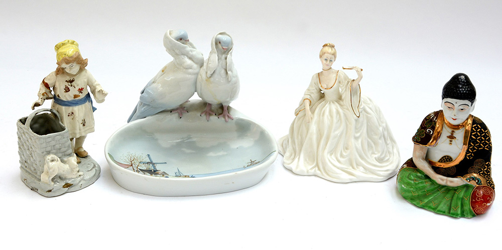 Lotto composto da quattro sculture in ceramica di soggetto e manifatture differenti (h max cm 19)(difetti)