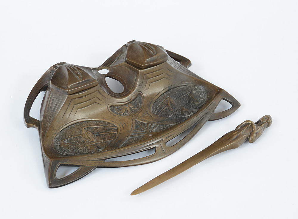 Lotto 356 | Lotto composto da una calamaio e un tagliacarte art noveau in bronzo