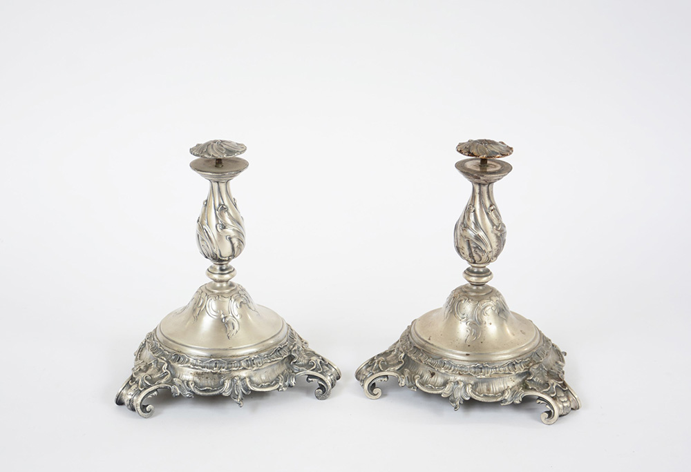 Coppia di basamenti per alzatine in peltro (h cm 20)(difetti)