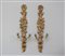 Coppia di appliques a tre fiamme in legno e metallo dorato (h. cm 120)
