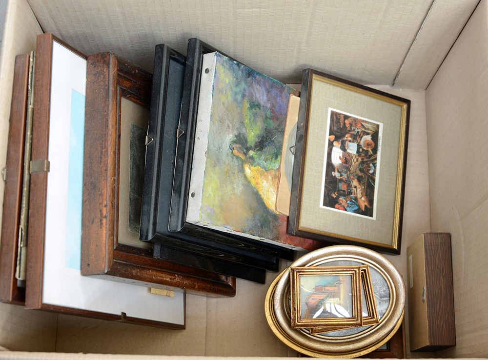 Lotto 493 | Cartone contenente numerosi quadretti, fra cui riproduzioni di soggetti e...