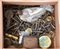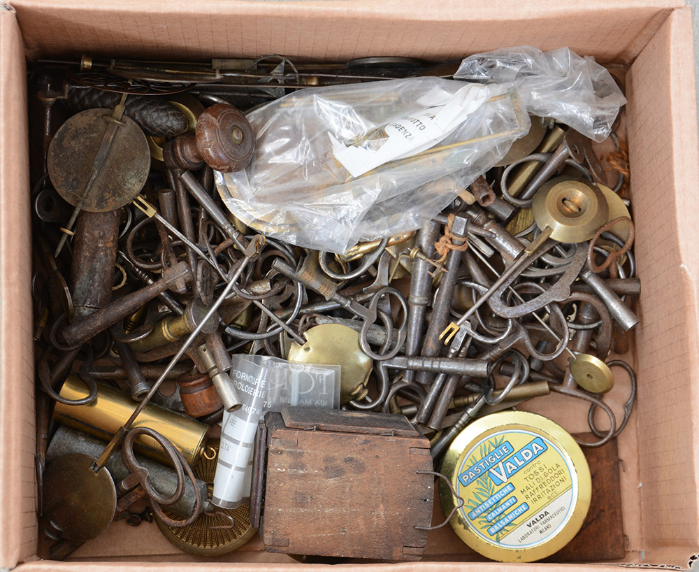 Lotto composto da numerose da chiavi, pesi e pendoli da orologio di varie...
