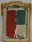 Raro cimelio contenente pezzi di bandiera italiana proveniente dalla guerra italo-turca, in cornice in legno dorato, 1912 (difetti)