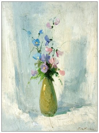 GIULIO DA VICCHIO 1925 - 2005 Vaso con fiori Olio su tavola 50 x 35. Firma in b. a d.; sul verso etichetta e timbri galleria Le Tamerici, Livorno. Collezione Mattei Gianfranco, Livorno.
