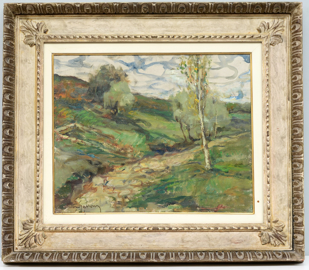 Vittorio Gussoni (Milano 1893 - Sanremo 1968) "Paesaggio collinare" olio su tela (cm 44x54) firmato in basso a sinistra, in cornice