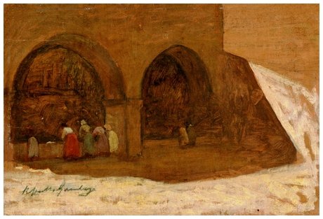 RAFFAELLO GAMBOGI 1874 - 1942 Fonte Branda - Siena Olio su tavola 20 x 30. Firma in b. a s.; sul verso titolo + timbro illeggibile.