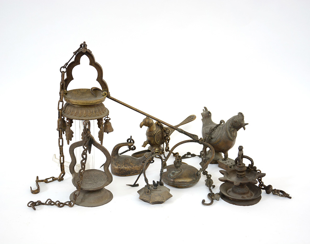 Lotto composto da otto lucerne di diversa fattura in bronzo (difetti)