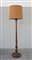 Lampada da terra con fusto in metallo scanalato e laccato, base tonda in legno, paralume in stoffa (h cm 190)(difetti)