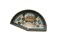 Ventaglio con stecche decorate e pagina in pergamena dipinta con paesaggio ed...