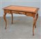 Scrittoio a tre cassetti nella fascia, gambe sagomate ed intagliate, piano rivestito in marocchino (cm 110x78x60)(difetti)