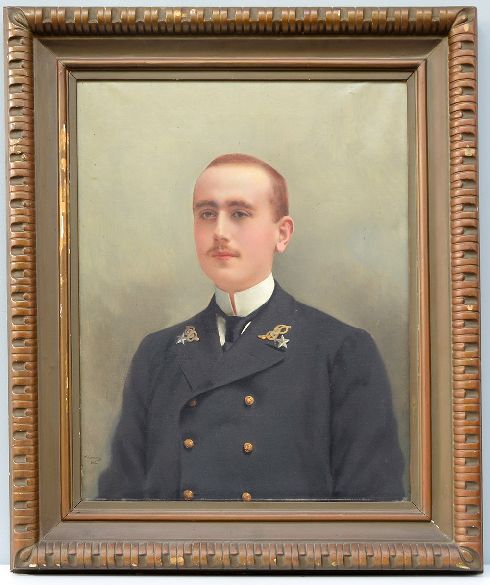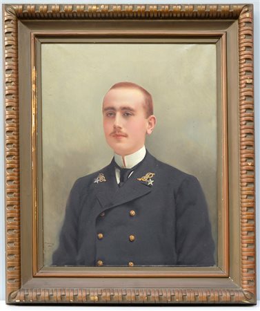 Vittorio Matteo Corcos (Livorno 1859 - Firenze 1933) "Ritratto di cadetto di Marina" 1902 olio su tela (cm 75x60) Firmato e datato in basso a sinistra In cornice (difetti)