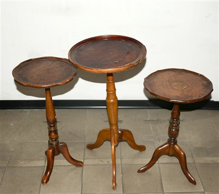Lotto composto da tre tavolini servant con colonne tornite. Misure diverse (difetti e restauri)