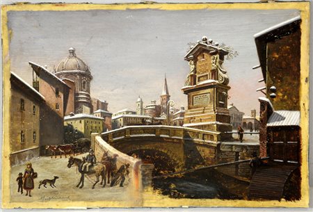 Ignoto "Ponte del Trofeo a Porta Ticinese" tempera su carta applicata a cartone (cm 17x25) Reca firma Migliara a matita in basso a sinistra Bibliografia: E.Sioli Legnani "Poesia di Milano" Milano 1940, opera citata e riprodotta in bianco e nero a pag.258, tav.119 (difetti) -EN Ignoto "Ponte del Trofeo a Porta Ticinese" tempera su carta applicata a cartone (cm 17x25) Reca firma Migliara a matita in basso a sinistra Bibliografia: E.Sioli Legnani "Poesia di Milano" Milano 1940, opera citata e riprodotta in bianco e nero a pag.258, tav.119 (difetti)