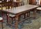 Tavolo da pranzo con piano rettangolare, gambe tornite riunite da traverse...