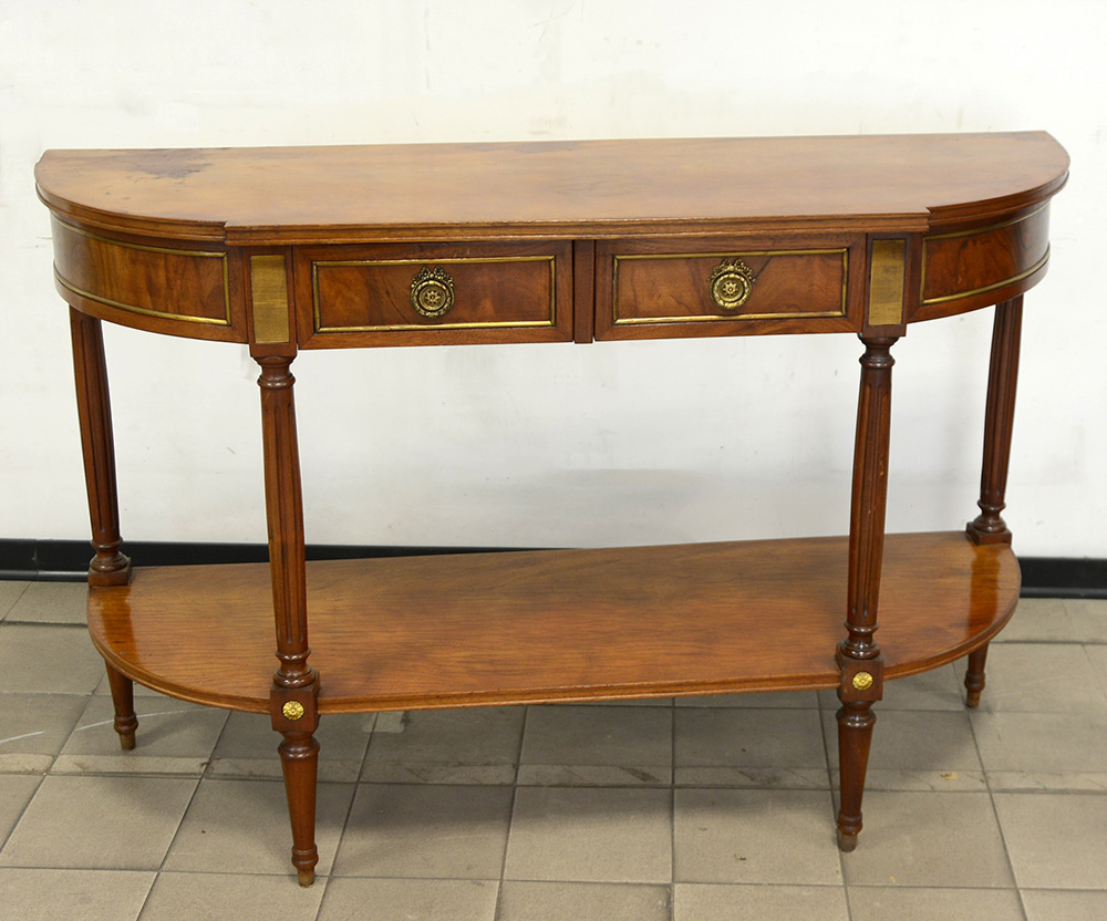 Lotto 810 | Consolle a due cassetti sottopiano e gambe scanalate riunite da pianetto (cm...
