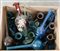 Collezione di numerose bottigliette a collo lungo, versatoi e ampolle in...